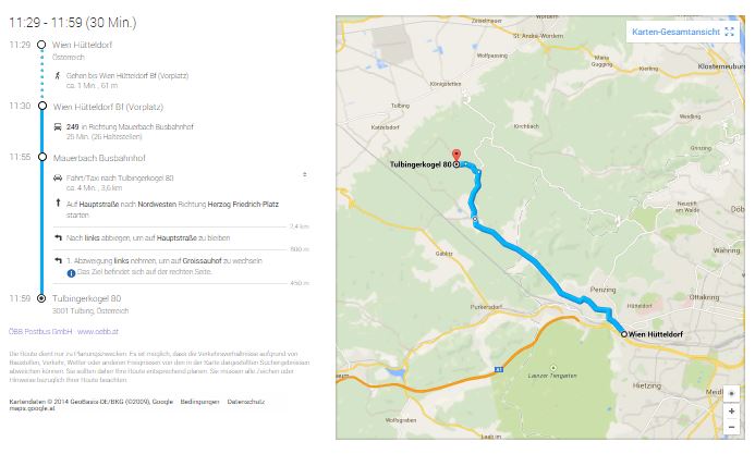 Mit den öffentlichen Verkehrsmitteln erreichen Sie uns ab Wien Hütteldorf in rd. 30 Minuten